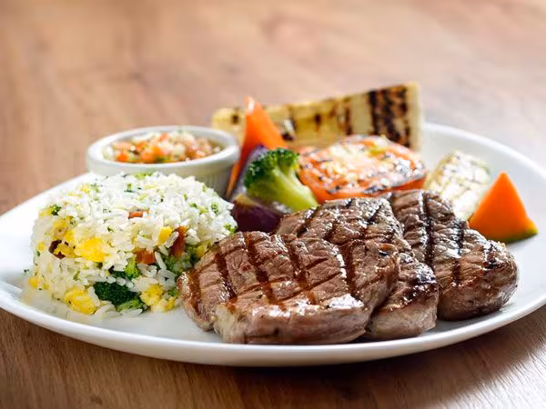 Para os amantes da picanha, a Picanha Completa traz 400g dessa carne suculenta e saborosa, grelhada na brasa. Acompanha 1 porção de baião tradicional, 1 porção de batata frita crocante, vinagrete fresco e uma farofa que complementa perfeitamente.