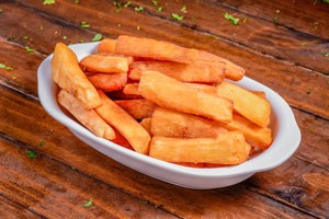 Para os amantes de peixe frito! O Peixe Frito Completo apresenta Tilápia frita crocante, baião tradicional, batata frita dourada, vinagrete fresco e uma farofa que complementa os sabores. Uma refeição completa para satisfazer seus desejos.