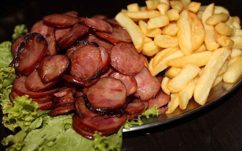 Delicie-se com 150g de linguiça grelhada na brasa, trazendo um toque defumado aos sabores. Acompanha baião saboroso, batata frita irresistível, vinagrete fresco e uma farofa crocante que complementa cada mordida.
